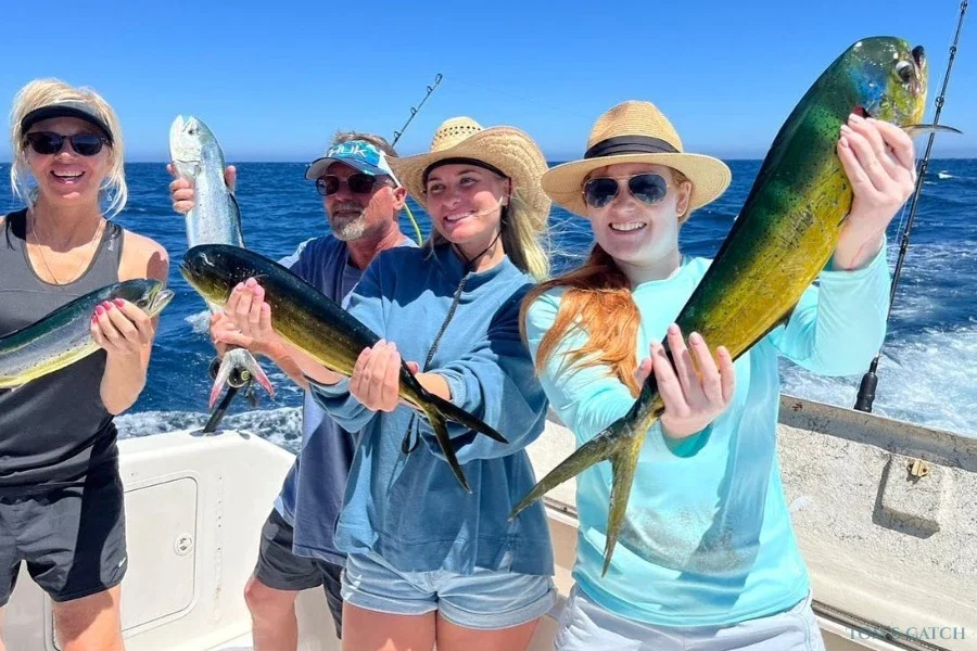 Angelausflug auf der Lovey, einer 37-Fuß-Stamas-Yacht in Cabo San Lucas. Die Lovey ist eine hervorragende Wahl für Hochsee- und Küstenangeln. Sie bietet Platz für bis zu 6 Personen und ist mit elektrischen Teaser-Rollen, professioneller Angelausrüstung und allem ausgestattet, was Sie für einen unvergesslichen Tag auf dem Meer brauchen.