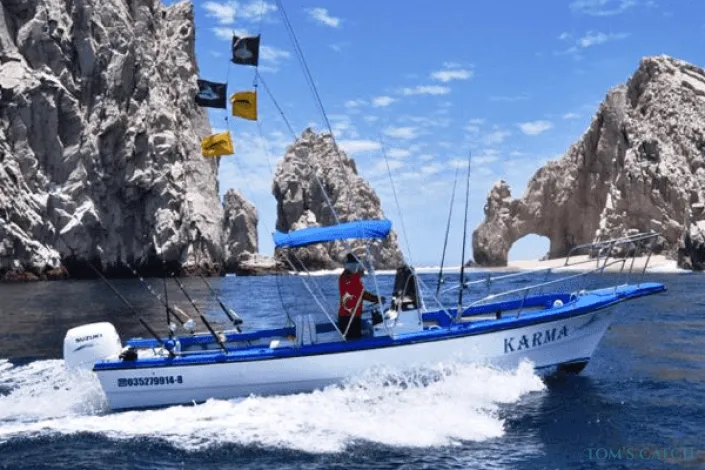 Erleben Sie einen aufregenden Tag beim Hochseeangeln in Cabo San Lucas an Bord der Karma, einem 23-Fuß-Panga-Fischerboot, perfekt zur Erkundung der fischreichen Gewässer des Pazifiks. Mit hochwertigem Angelzubehör und einer erfahrenen Crew haben Sie die Möglichkeit, Gallo-, Goldmakrelen-, Thunfische und Stachelmakrelen zu fangen. Buchen Sie jetzt mit Tom’s Catch und genießen Sie das beste Angeln in Cabo San Lucas.
