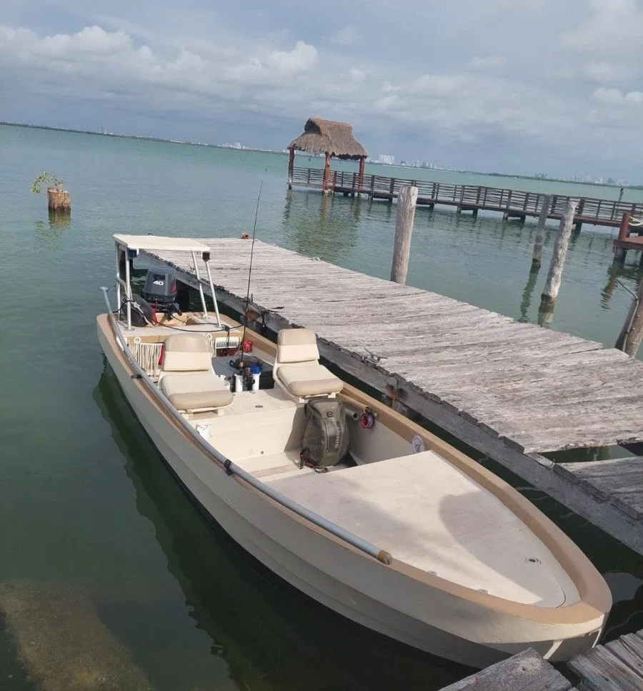 Erleben Sie Sportangeln in Cancún Isla Blanca mit unserer 18 Fuß langen Esquife 18. Ideal für Hochseeangeln, auf Marlin, Dorado und andere lokale Fischarten. Toms Catch bietet ein sicheres, komfortables und leicht zu handhabendes Boot für Anfänger und erfahrene Angler. Buchen Sie noch heute Ihren Angelcharter in Isla Blanca und genießen Sie ein unvergessliches Angelerlebnis in Mexiko.
