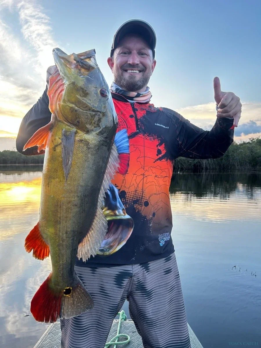 Der Weltrekord liegt bei einem riesigen Pfauenbarsch von 27 Pfund und 37 Zoll Länge.