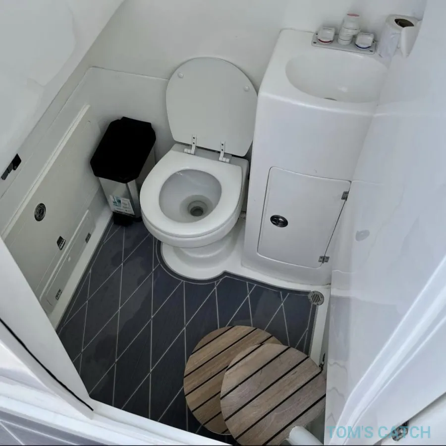 Die große Mittelkonsole bietet ein perfektes Gleichgewicht zwischen Geschwindigkeit, Fahrverhalten und Komfort, was sie zu einer Traumyacht für jeden Seefahrtsenthusiasten macht. Im Bugbereich befindet sich ein Loungebereich mit einem umbaubaren Tisch, der durch große Sonnenpolster für diejenigen ergänzt wird, die faul in der Sonne liegen möchten.