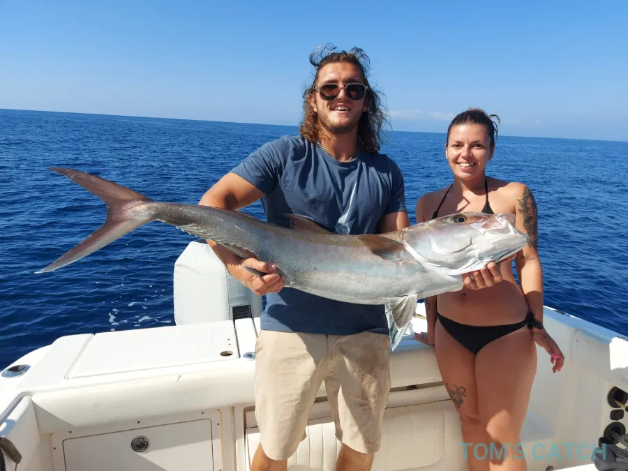 Diese Gewässer sind bekannt für Albacore Thunfisch, Großaugen Thunfisch, Schwarzflossen Thunfisch, Blauflossen Thunfisch, Langschwanz Thunfisch, Gelbflossen Thunfisch, Bernsteinmakrele, Almaco Jack, Barrakuda, Dentex, Wahoo, Echten Bonito Thunfisch, und mehr - mit etwas Glück werden Sie ein paar an den Haken bekommen! Sie werden Ihren Fang mit leichtem Tackle, Poppern, Schleppangeln, Driften, Jiggen, Grundangeln oder vielleicht etwas Speziellerem in diesem Gebiet angeln. Kapitän Filippo kann Ihnen auch helfen, das Drachenfischen auszuprobieren. Für die Abenteuerlustigen unter Ihnen gibt es das Speerfischen.