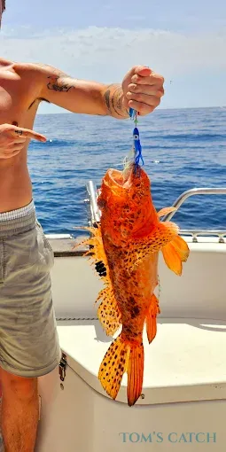Pescar por esta zona suele llevarte a capturar Bonito, Pez Limón, Dentón, Lubina Europea, Calamar, Atún Rojo y Pez Espada (solo captura y suelta), Dorada, San Pedro, Mero, Bacoreta, Llampuga (Mahi Mahi) y más, con un poco de suerte. Apuntarás a tus capturas mediante spinning, popping, curricán, deriva, jigging, pesca de fondo o alguna técnica más especializada en la zona.