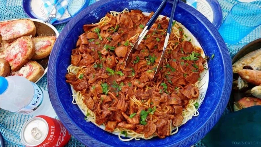 Toda la variedad de ensaladas, pescado (capturado ese mismo día), espaguetis, vino, galletas y más, están incluidos en el precio del viaje.