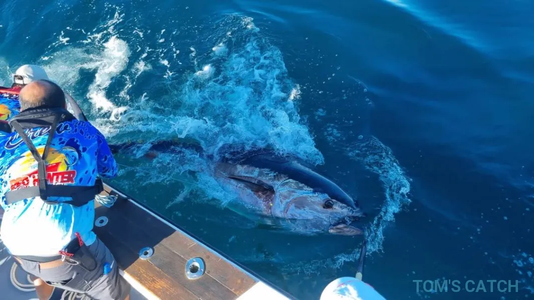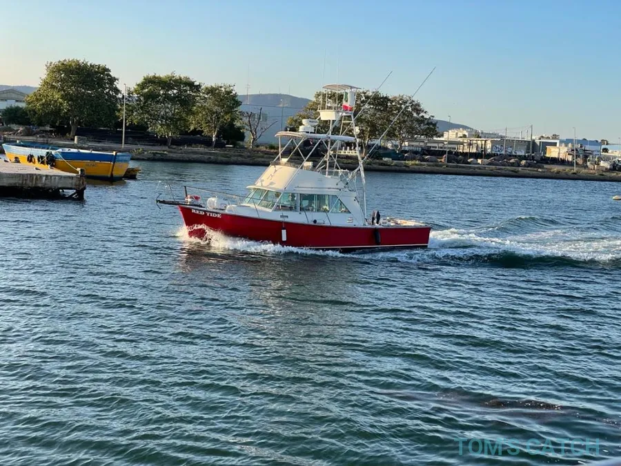 The captain fishes from a 35’ Henriques Maine Coaster named the Red Tide that can take up to 6 guests. The boat was fully restored in 2020 and it runs on twin 240 HP Cummins engines. It features Raymarine and Lowrance navigation technology and safety gear (including adult and kid-size life jackets). The boat also comes with a toilet for your comfort and all the equipment that helps Skipper Claudio make your fishing experience the best possible – including a fighting chair, outriggers, a live bait tank, and an ice-box.