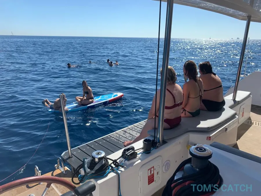 Snacks, water, soft drinks, wine, cava, etc. are included on all catamaran trips. On-board catering, a DJ for dancing and other services can be added, or trips can be combined with activities like jet-skiing, parasailing, banana boats, helicopter flights, etc.