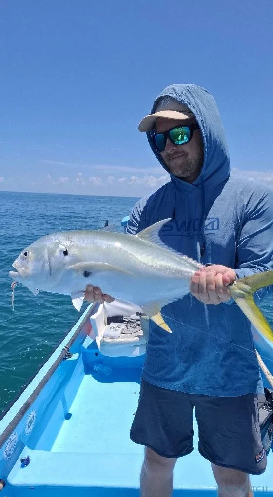 Enjoy the thrill of sport fishing in Cancun’s Isla Blanca Lagoon aboard the Esquife 23, a 23-foot boat designed for both inshore and offshore trips. Target exciting species such as tarpon, snook, jack crevalle, and barracuda. Safe, comfortable, and easy to handle, it’s perfect for beginners and experienced anglers alike. Book your Isla Blanca fishing charter with Toms Catch and experience one of the best fishing adventures in Mexico.