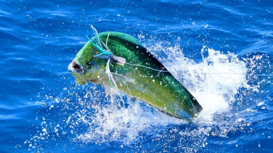 Towards May or June, the trolling season starts and this is when we chase blue marlin, white marlin, tuna, wahoo, dorado, spearfish. These pelagic species are around until October more or less.