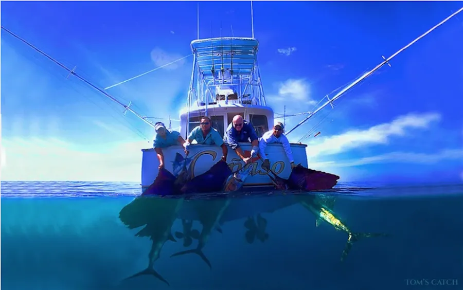 10% d’acompte à Tom’s Catch pour réserver le bateau, le reste au capitaine: