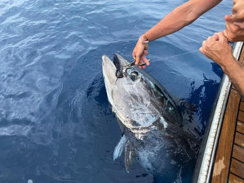 Pêche Spécialisée au Thon: C'est notre passion et notre expertise. Nous nous aventurons au large vers les zones de nourrissage du Thon Rouge.