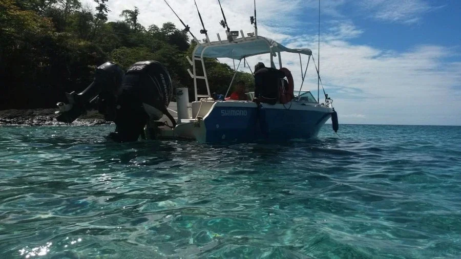 La pêche se fait à bord du Coiba's Spirit, un bateau de pêche Wellcraft de 25 pieds construit à l'origine en 1990 et restauré en 2014. Il est propulsé par un moteur Mercury de 275 CV, avec une vitesse de croisière de 30 nœuds, ce qui signifie que vous pouvez vous rendre très facilement à la destination de pêche. rapidement. Le bateau dispose d'un GPS Lowrance, d'un sondeur, d'un équipement de plongée en apnée, d'un équipement de sécurité, d'un équipement de chasse sous-marine, de tubes à thon, de stabilisateurs et d'un vivier pour l'appât.