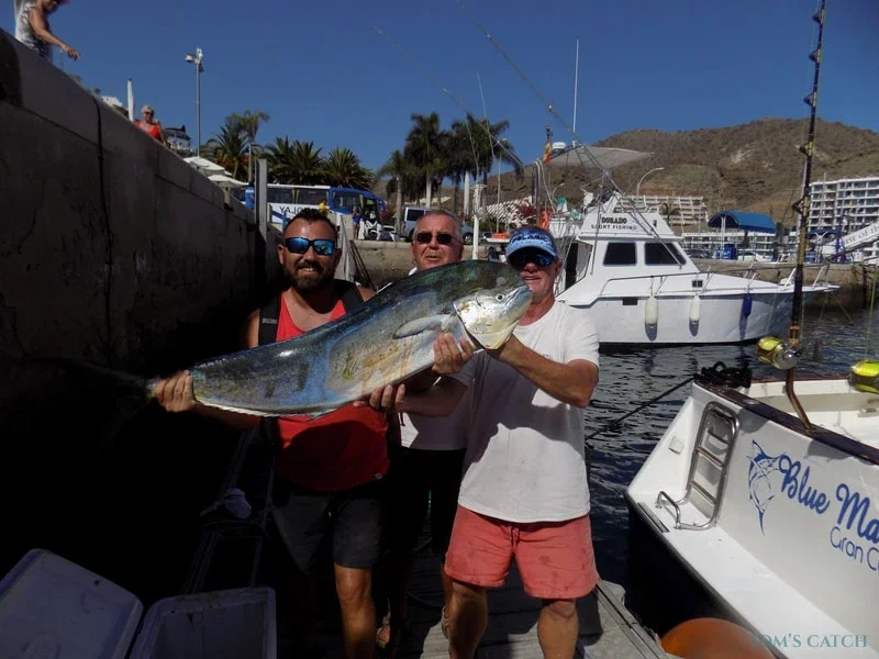Aujourd'hui nous sommes revenus ! Hier nous n'avons vu aucun poisson… aujourd'hui ; 1 makaire blanc ?? Les gens à bord (Moski et Olivier) nous sommes également heureux et fiers et célébrons avec nous ce moment magique. Nous pouvons vous recommander la pêche au gros à Gran Canaria !!