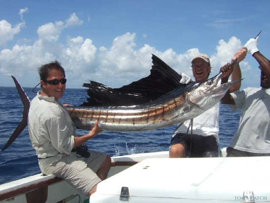 15% d’acompte à Tom’s Catch pour réserver le bateau, le reste au capitaine: