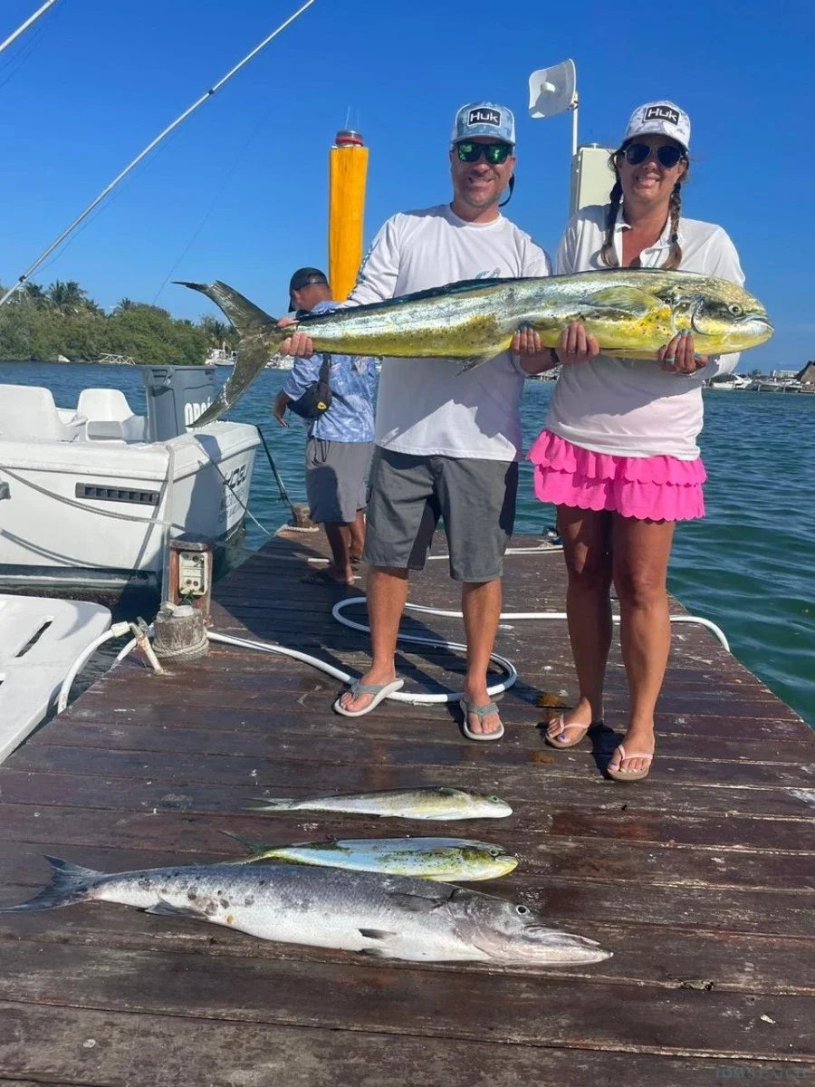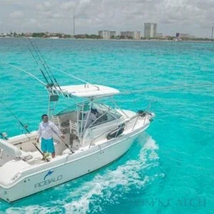 Pesca sportiva a Cancun a bordo di My Baby - 30 Feet | Tom's Catch Esperienze di un'emozionante avventura di pesca sportiva a Cancun a bordo di My Baby, una barca da 30 piedi perfetta per la pesca d'altura. Con attrezzature di alta qualità e un equipaggio professionale, avrete la possibilità di catturare marlin, pesci vela, mahi-mahi e tonni nelle acque turchesi dei Caraibi. Perfetto per i pescatori di tutti i livelli, Tom's Catch offre un'esperienza di pesca unica a Cancun. Prenotate ora e godetevi la migliore pesca nei Caraibi messicani.
