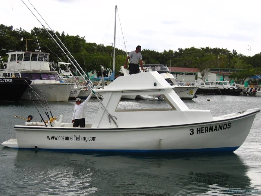3 HERMANOS FISHING CHARTERS è in attività dall'aprile 2000. In qualità di tour operator responsabile, Tres Hermanos Cozumel Pesca vi offre un'esperienza completa in tutti i servizi elencati. Mantenere un buon standard di pratica a vostro vantaggio e mantenere i nostri prezzi bassi in questi tempi difficili ci ha permesso di essere al vostro servizio con il meglio di ciò che offriamo e niente di meno. Le barche di TRES HERMANOS vi porteranno nella vostra zona di pesca più velocemente di molte altre barche a Cozumel. Arrivando più velocemente, avrete più tempo per pescare. Quando pescate con noi, avrete a disposizione la migliore attrezzatura e il miglior equipaggio. Operiamo dalla Marina Puerto de Abrigo, appena a nord della città. Tutte le uscite di pesca in acque basse partono da questo porto e anche i clienti delle navi da crociera partono da questo porto. Il nostro equipaggio ha esperienza nelle acque di Cozumel e ha una conoscenza approfondita della pesca in questa zona. Tutto il nostro personale parla correntemente l'inglese.