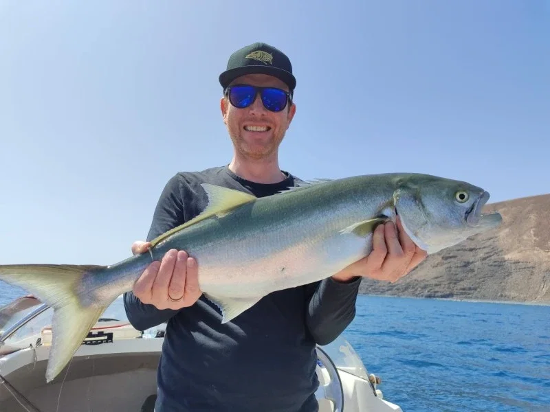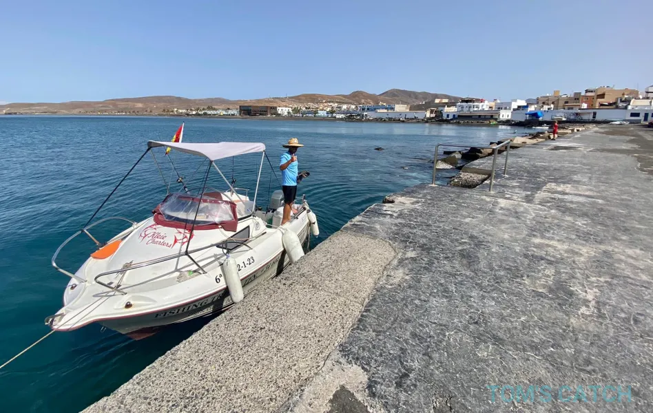 Attraccato a Gran Tarajal, questo charter di pesca professionale offre ottime uscite di pesca a Fuerteventura a un prezzo davvero competitivo. Il capitano Efraín ha molto successo nella pesca a fondo e nella pesca col vivo. Le principali specie di pesce a cui si rivolge sono l'orata (bocinegro), il dentice, il barracuda, il bonito e la ricciola. È anche un esperto di pesca al tonno, pesca grossa, pesca al marlin e traina leggera per il tonnetto striato, il wahoo, il dorado e l'alalunga. Tutti sono i benvenuti a bordo di questo charter di pesca: dai pescatori alle prime armi a quelli esperti, ai gruppi aziendali e alle famiglie. Prenotate un giorno di pesca in mare a Gran Tarajal, una destinazione da sogno per ogni pescatore!