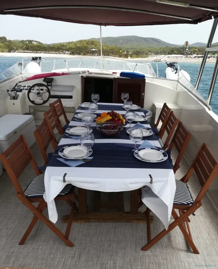 Con sede a San Antonio, il capitano Toni e Pepita offrono sia uscite di pesca che straordinarie Esperienze gastronomiche a Ibiza. Essendo orgoglioso di condividere solo i migliori ingredienti di Ibiza, il capitano Toni si reca al mercato del pesce locale alle 4 del mattino prima di ogni escursione con i clienti. Dopo essere saliti a bordo verso le 11 del mattino, vi dirigerete verso una delle splendide spiagge dove ancorare per la giornata. Potrete sorseggiare un bicchiere di champagne e fare una nuotata nelle acque cristalline delle Baleari. Nel frattempo, l'equipaggio inizia a cucinare: gamberi, aragoste, pesce e riso. Per il dessert c'è la torta e la frutta. Caffè, liquori, sangria e per finire gin tonic. Guardate il video dell'esperienza >> Pesca a Ibiza I fondali rocciosi, le isole, le scogliere e le baie, insieme alla protezione delle risorse naturali, creano una ricca fauna sottomarina. Durante tutto l'anno è possibile praticare la pesca a bolentino, dentici e ricciole, mentre i tonni sono presenti tra aprile e ottobre. Prenotate ora questa barca e godetevi un'ottima giornata di pesca a Ibiza.