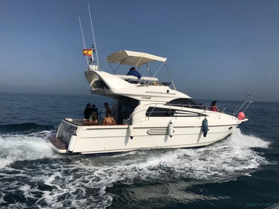 Situato a Puerto Banus (Marbella, Spagna), questo charter di pesca è eccellente per le vostre uscite di pesca d'altura con la famiglia e gli amici. A bordo c'è tutto il necessario per godersi una splendida giornata di pesca a Marbella e nella Costa del Sol. Offriamo uscite di pesca di mezza giornata o di una giornata intera e ci impegniamo al massimo per garantire che la vostra gita sia memorabile e produttiva. L'Astondoa 36 AS è una barca di 12 metri di lunghezza che ha un'ampia poppa con una zona bagno e una prua con cuscini per prendere il sole. La parte superiore (flybrig) è dotata di un grande divano con tendalino per ripararsi dal sole. Sun La sua capacità massima è di 9 passeggeri + Capitano. Dispone di un ampio soggiorno, un bagno, 2 cabine e un frigorifero per mantenere le bevande sempre fredde. Tutti sono i benvenuti a bordo dei nostri charter di pesca: dai pescatori principianti a quelli esperti, dai gruppi aziendali alle famiglie. Prenotate ora questa barca e godetevi una splendida giornata di pesca a Puerto Banus.