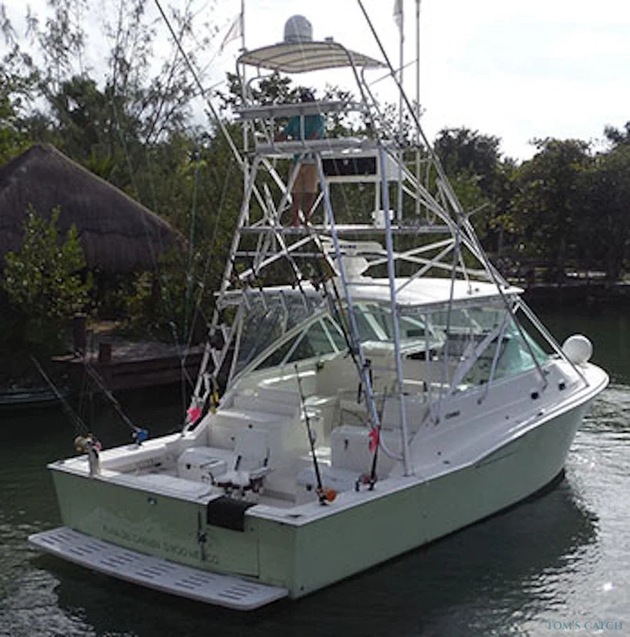 Situato a Puerto Aventuras Marina, Playa del Carmen, questo charter di pesca è eccellente per le vostre uscite di pesca d'altura con la famiglia e gli amici. A bordo c'è tutto il necessario per godersi una splendida giornata di pesca nella Riviera Maya. Offriamo uscite di pesca di mezza giornata, 3/4 uscite di pesca e giornate intere. A bordo dei nostri charter di pesca sono benvenuti tutti, dai pescatori alle prime armi a quelli esperti, dai gruppi aziendali alle famiglie. Prenotate ora questa barca e godetevi una grande giornata di pesca in Messico. Il nostro Luhrs 38' è una barca a corpo largo in stile "express". Progettata per i tropici, questa barca è la piattaforma di pesca ideale per qualsiasi gruppo. La barca è equipaggiata con attrezzatura di alta qualità ed è pronta a catturare grandi pesci. Incluso acqua, soda, ghiaccio e snack. E naturalmente licenze, attrezzatura di prim'ordine, esche e sempre una testa pulita (WC).