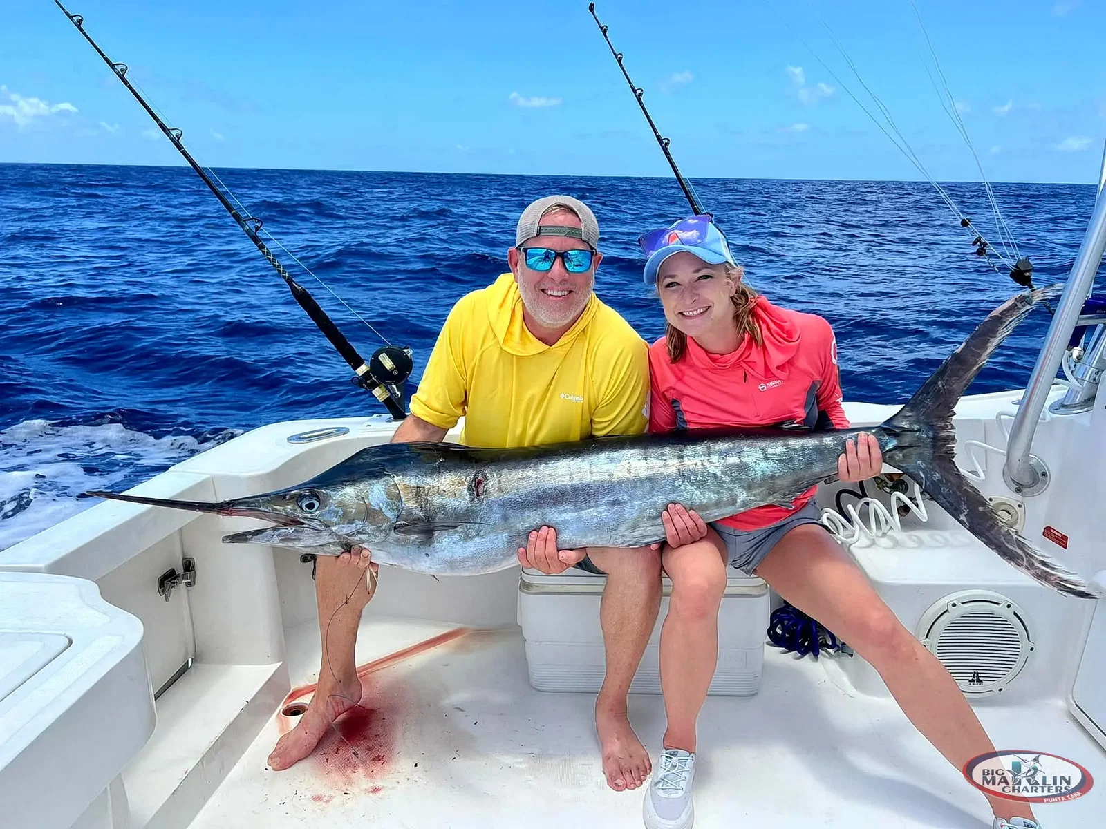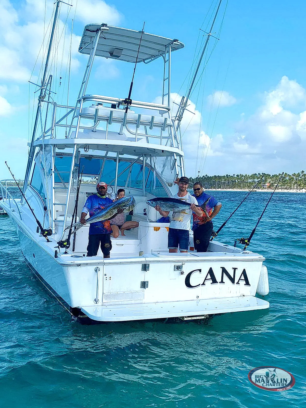 NUOVA Barca per la pesca d'altura della nostra azienda. LA MACCHINA DA PESCA ULTIMA Luhrs 32' Aperta per charter di pesca privati a Punta Cana a prezzi ragionevoli. Scafo molto largo e molto stabile sull'acqua mossa. Poppa comoda e ampia con molto spazio libero per la lotta con la pesca. Cinque canne in acqua e lunghi outriggers. Potete rilassarvi e rinfrescarvi durante i charter di pesca nella grande cabina con divani in pelle bianca e seduti uno di fronte all'altro. Ampio pozzetto con sedia da combattimento Pompanette e lungo Forward, affacciato sul fly-bridge con le carrozze. Comoda e ampia tavola da bagno con scala marina per un facile accesso al mare per fare snorkeling, nuotare o rilassarsi dopo la pesca. Navigate dal Capitano dominicano locale ed esperto. Venite a pescare con noi per catturare Marlin blu di taglia tropicale, Marlin bianchi, pesci vela, tonni pinna gialla, barracuda, mahi mahi, wahoo, sgombri reali. Non importa se questa è la vostra prima Esperienza di Pesca d'altura o se siete un veterano, Big Marlin Charter di pesca è il massimo del divertimento che potete avere sull'Oceano Atlantico! Abbiamo diverse uscite emozionanti per rendere la vostra vacanza indimenticabile. Il furgone privato dell'azienda è disponibile per entrambi i percorsi ed è incluso. Come sempre, non ci sono costi aggiuntivi nascosti. Capt. Yustas Fortuna Quando vi imbarcherete con Big Marlin Punta Cana Charters a bordo della splendida Cana, la vostra avventura comprenderà licenze di pesca, canne e mulinelli Shimano e Penn International di alto livello, oltre a una serie di esche Rapala e esche vive fresche. Inoltre, l'equipaggio dedicato assicura la vostra soddisfazione culinaria con bevande rinfrescanti, snack deliziosi e un pranzo soddisfacente. I pesci che prenderete all'amo saranno puliti e sfilettati con cura, pronti per essere portati a casa come ricordo della vostra indimenticabile esperienza!