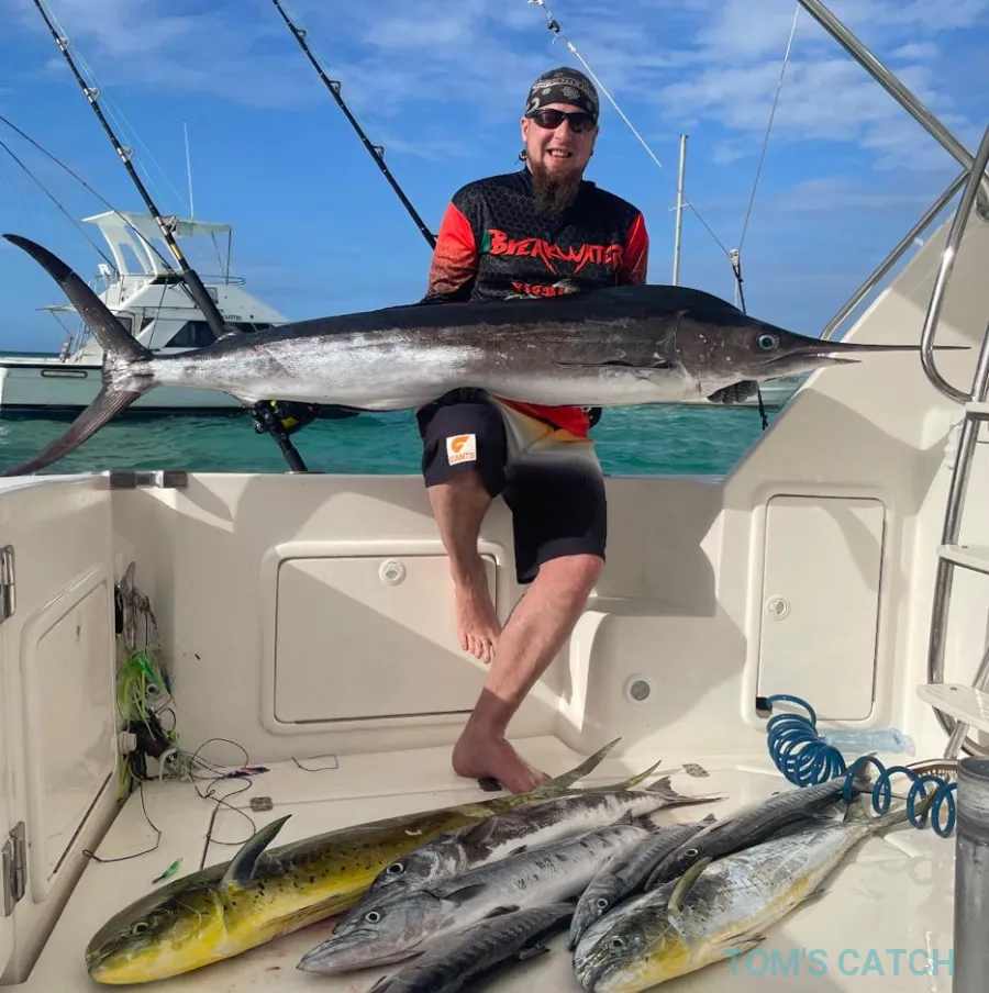 Quando vi imbarcherete con Big Marlin Punta Cana Charters a bordo della splendida Gone Dog, la vostra avventura comprenderà licenze di pesca, canne e mulinelli Shimano e Penn International di alto livello, oltre a una serie di esche Rapala e esche vive fresche. Inoltre, l'equipaggio dedicato assicura la vostra soddisfazione culinaria con bevande rinfrescanti, snack deliziosi e un pranzo soddisfacente. I pesci che prenderete all'amo saranno puliti e sfilettati con cura, pronti per essere portati a casa come ricordo della vostra indimenticabile esperienza!