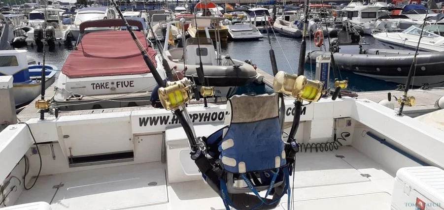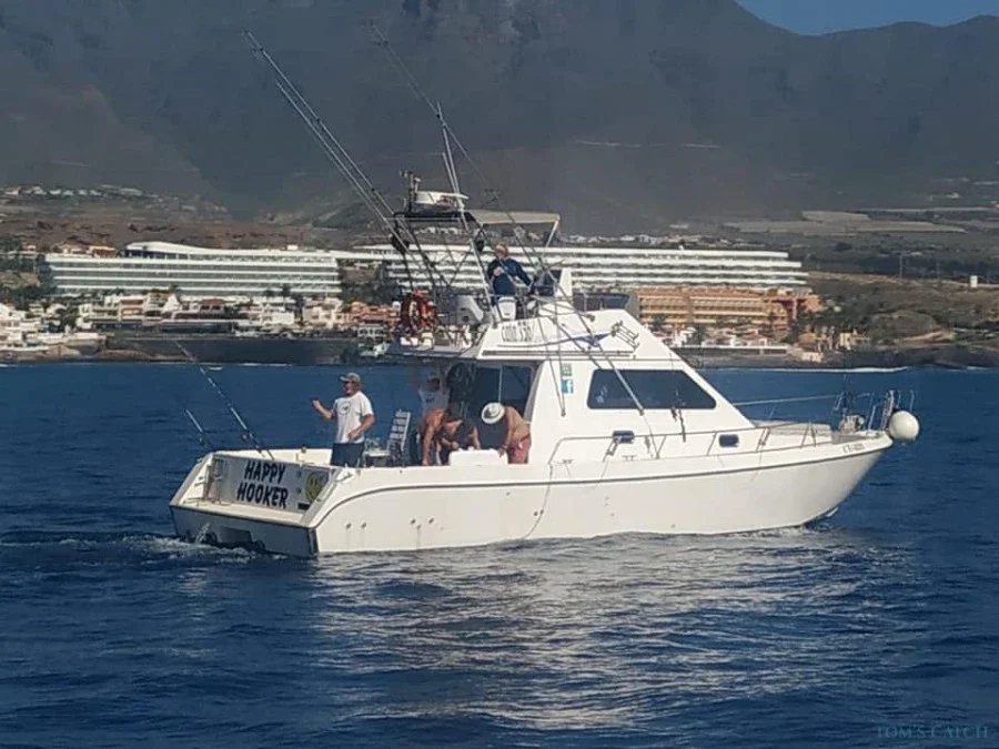 Happy Hooker II è la macchina da pesca sportiva di Jamie. Tutto l'anno pesca sportiva d'altura, siamo specializzati nel lato più leggero della pesca in mare, con squali di grandi dimensioni e razze, molto divertenti da catturare e rilasciare sempre. Happy Hooker fa 28 nodi, siamo in grado di raggiungere velocemente le zone di pesca, questo significa che è possibile iniziare a pescare più velocemente ed essere a caccia di cibo quando succede. Se state cercando un charter privato a prezzi accessibili a Tenerife, sono il vostro uomo! Il Capitano di questa barca è Jamie Hinson. Ha vissuto a Tenerife negli ultimi 30 anni e ha lavorato in Barca per la maggior parte della sua vita. Con i suoi 25 anni di Esperienza conosce molto bene le acque di Tenerife e sa come catturare un pesce. Tenerife offre alcune delle migliori pescate in circolazione. Siamo in grado di pescare tutto l'anno, catturando una grande varietà di pesci: Blue Marlin, Squali, Tonni, Wahoo e tutti i pesci di fondo. Completamente attrezzata, con attrezzatura al top come mulinelli Shimano e Penn, fish finder, pozzo del vivo, stabilizzatori, gps, sedia da combattimento, tutta l'attrezzatura di sicurezza, barca stabile e robusta.