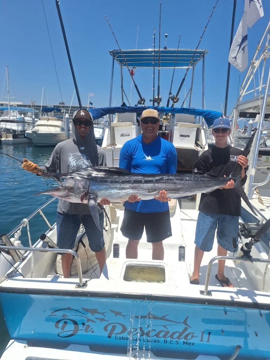 Este charter de pesca en Cabo San Lucas es perfecto tanto para principiantes como para pescadores experimentados que deseen capturar pez vela, marlín, dorado, atún y más. Dr. Pescado II ofrece salidas de media jornada y de jornada completa adaptadas a tus preferencias.