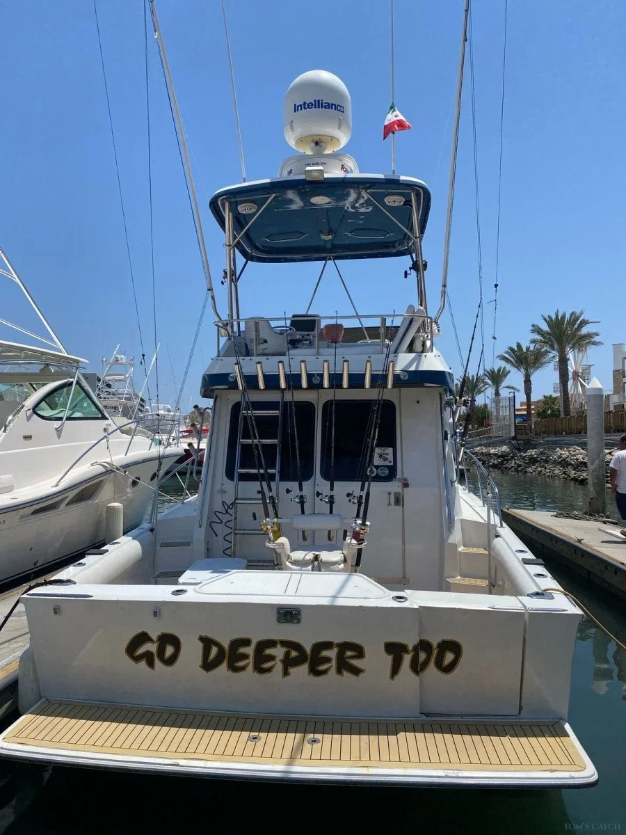 Experimenta la emoción de la pesca deportiva en Cabo San Lucas a bordo del Go Deeper Too, también conocido como El Cazador. Este elegante yate mediterráneo de 38 pies es la última incorporación a nuestra flota, diseñado para ofrecer potencia, comodidad y el máximo rendimiento en cada aventura de pesca.