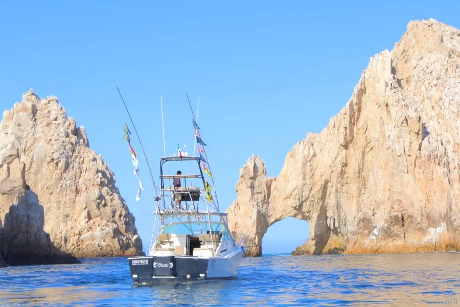 El Phantom es un barco de pesca deportiva de 33 pies en Cabo San Lucas, ideal tanto para la pesca en alta mar como en la costa. Impulsado por dos motores diésel Caterpillar, ofrece velocidad, estabilidad y una navegación suave para llegar a los mejores puntos de pesca.