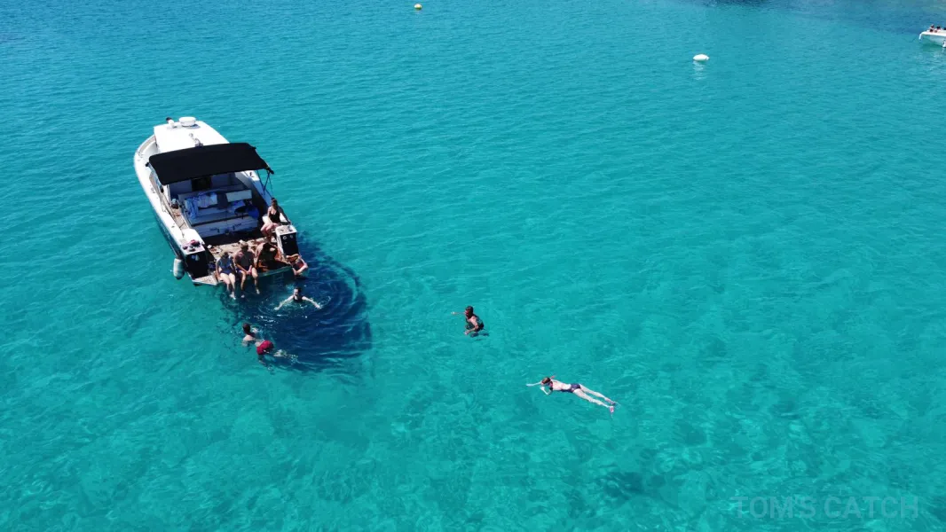 Antes de regresar, te llevaremos a la famosa Laguna Azul, donde tendrás tiempo para disfrutar de un baño y hacer esnórquel en uno de los destinos más populares de Dalmacia. También te proporcionaremos máscaras y tubos de buceo. Al final de la excursión, el Capitán te dejará en el mismo lugar donde comenzó.