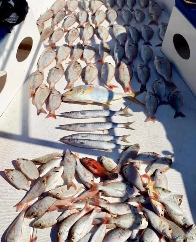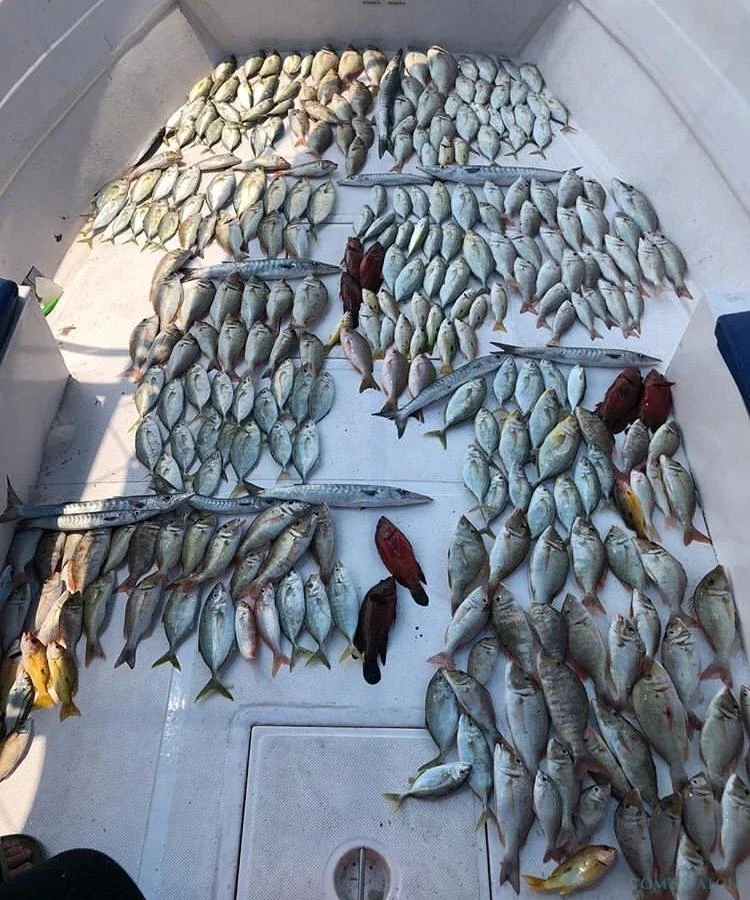Los tipos de peces que se capturan con mayor frecuencia son: pez rey, barracuda, cobia, mero, sargo, pargo amarillo y pez reina.