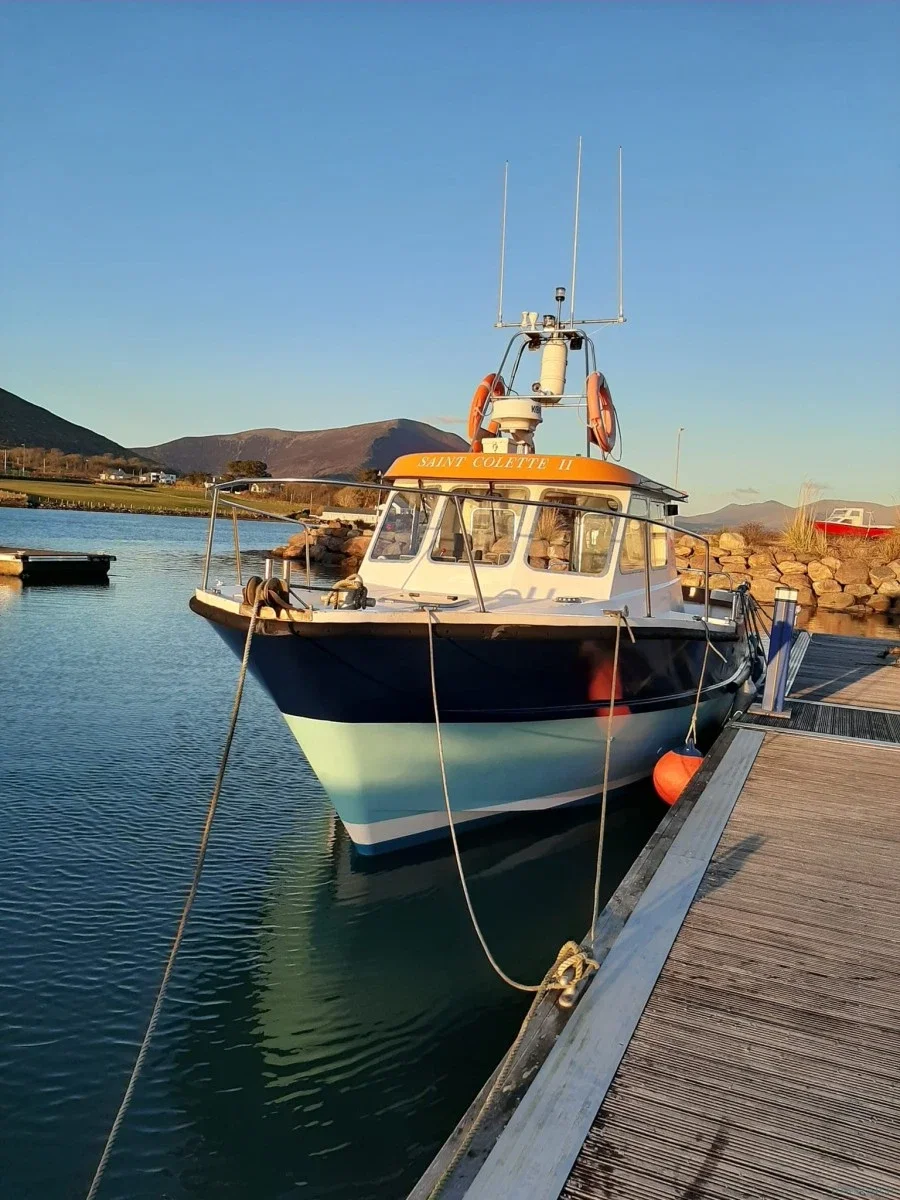 Situado en Caherciveen, en el condado de Kerry, este barco de charter de pesca es ideal para tus salidas de pesca en alta mar con tu familia y amigos. Todo lo necesario para disfrutar de un maravilloso día de pesca con aparejos ligeros en Irlanda. Ofrecemos salidas de pesca de jornada completa para pescar especies objetivo como el bacalao, la maruca, el abadejo y la limanda. Hacemos un esfuerzo adicional para garantizar que tu salida sea memorable y productiva. Todo el mundo es bienvenido a bordo de nuestros Charters de pesca, desde pescadores novatos hasta experimentados, pasando por grupos corporativos y familias. Reserva ahora este barco y disfruta de un gran día de pesca en Caherciveen.