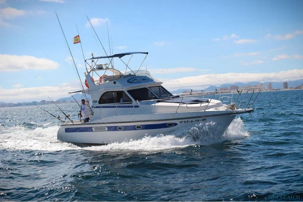 El barco es un Doqueve 360 Fisherman, con una eslora total de 11,25 m y una manga de 3,60 m. Cuenta con dos motores Yanmar de 260 CV que alcanzan una velocidad de crucero de 27 nudos. Este Charter de pesca cuenta con radar, sonar, piloto automático, plotter y radio. Hay suficientes soportes para cañas a bordo. El barco también está equipado con estabilizadores y juegos completos de cañas para curricán, para pesca deportiva y carretes eléctricos para pesca de fondo en alta mar.