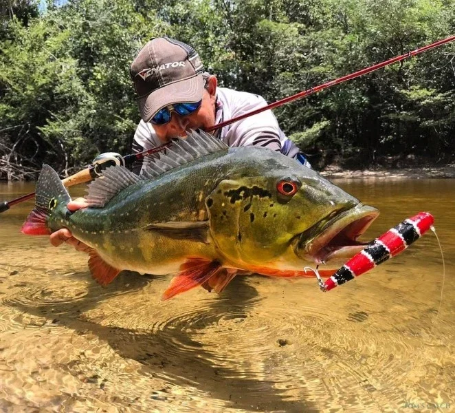 Lucha y pesca el pez pavo real gigante en la hermosa selva amazónica. Déjate llevar por una experiencia impresionante.