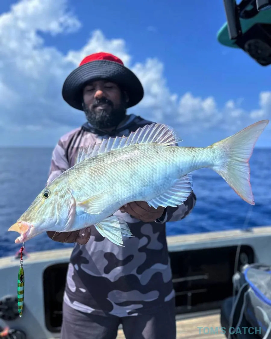 Si prefieres una acción más ligera, prueba el jigging ligero para especies increíbles como el róbalo rojo, el pez job, el pez jack, el emperador de nariz larga, el emperador rojo, la trucha de coral y muchas más. ¡Únete a nosotros para disfrutar de un divertido y emocionante Charter de pesca en las Maldivas!