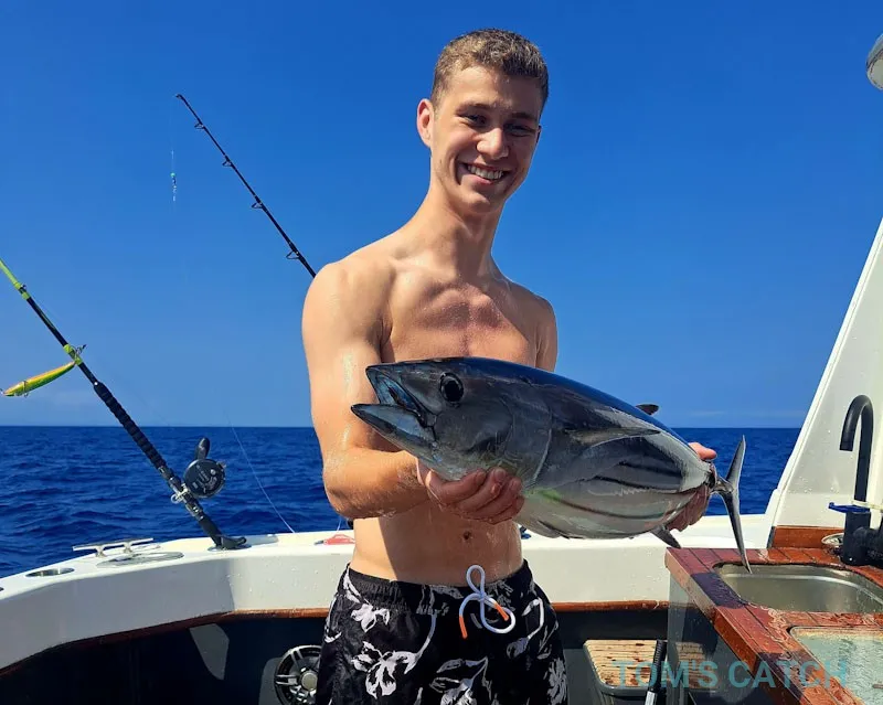 El Laguna Sportfisher, de 11,5 m de eslora, está especialmente equipado para la pesca en alta mar y cuenta con modernos equipos electrónicos Garmin, sistemas de cebo vivo y mucha superficie de cubierta para pescar con comodidad.