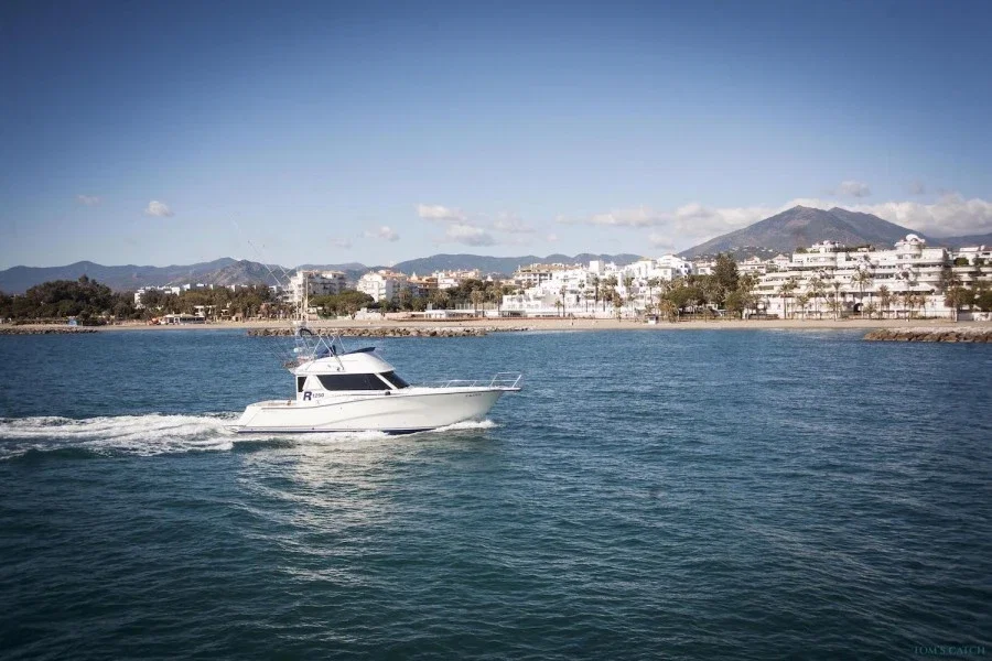Luna es uno de los barcos de Charter de pesca mejor equipados para pescar en Marbella. Cuenta con GPS, plotter, sonda (2000 metros), radar (antena de 48 millas de alcance), teléfono con dos estaciones de radio, piloto automático, cámara de video, silla de combate, techo rígido, cabina doble en el fly bridge, agua caliente, estabilizadores, 10 soportes para cañas, wc, ducha, balsa salvavidas para 10 personas, solárium en la proa para tres personas...