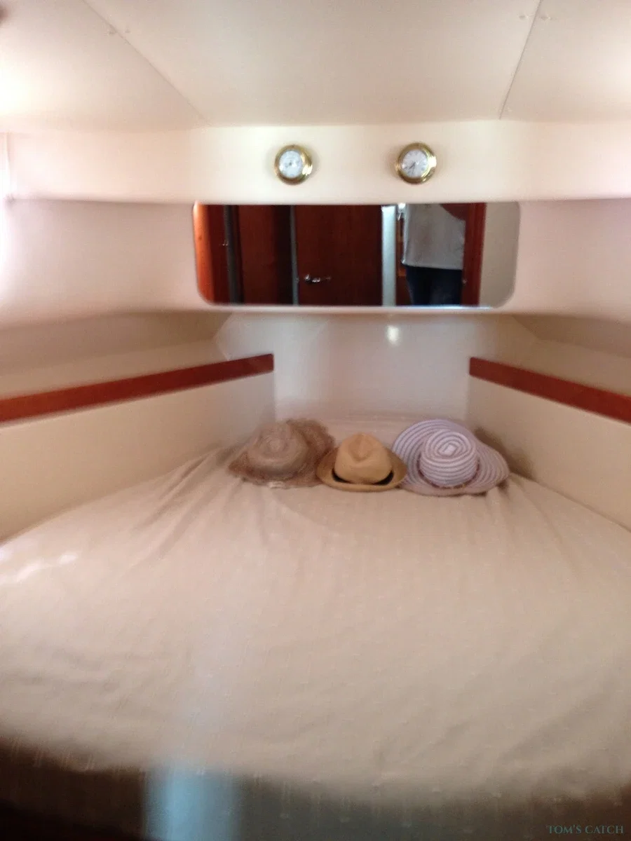 El barco está en perfectas condiciones, todo está ordenado y reluciente. El patrón es tan perfeccionista que los motores y las sentinas no pueden tener ninguna mancha de óxido o aceite.