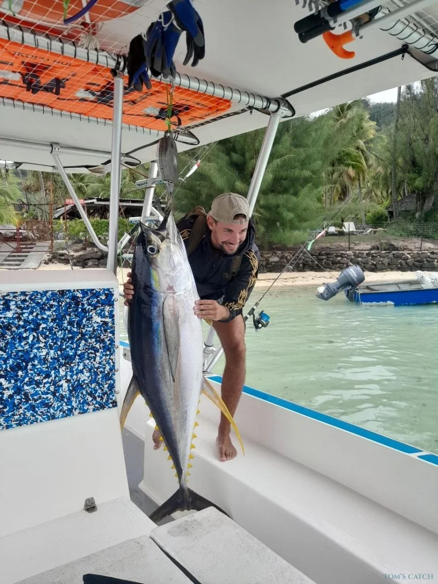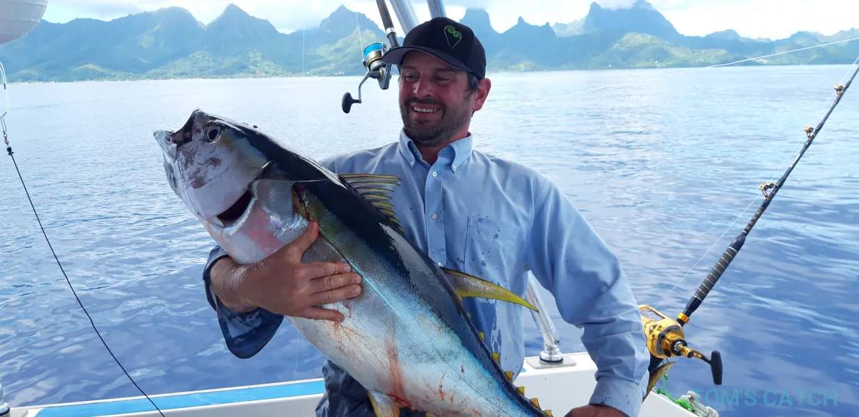 A lo largo de las costas de Moorea se encuentran numerosas especies, podrás pescar atún blanco, atún rojo o atún banana, bonito, pez espada, dorado, barracuda, etc.