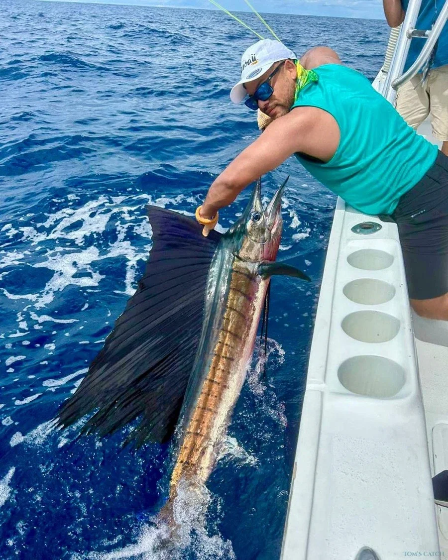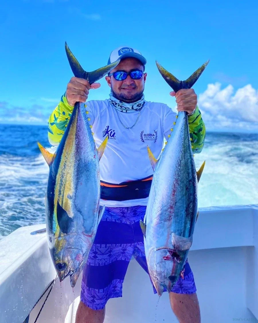 Nuestro capitán es uno de los únicos capitanes de Quepos que prefiere pescar en aguas costeras antes que en alta mar. El pez gallo y el pargo son su pasión, y cuando fuimos a comprar el barco, ¡se enamoró completamente de él! También tiene los costados muy altos para los niños, y su diseño largo y estrecho es ideal para moverse por la costa con mucho espacio.