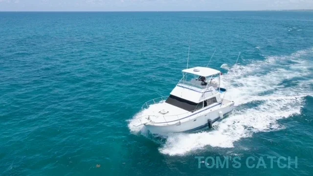 Marina El Cid y sus experimentados capitanes te dan la bienvenida a bordo de un barco de pesca deportiva Bertram de 38 pies con capacidad para 10 pasajeros. Cuenta con estabilizadores, downriggers, una silla de combate y todo lo necesario para un día productivo en el agua. Hay un baño a bordo para tu comodidad. Además, este barco es accesible para sillas de ruedas. El capitán te proporcionará cañas y carretes, así como señuelos.