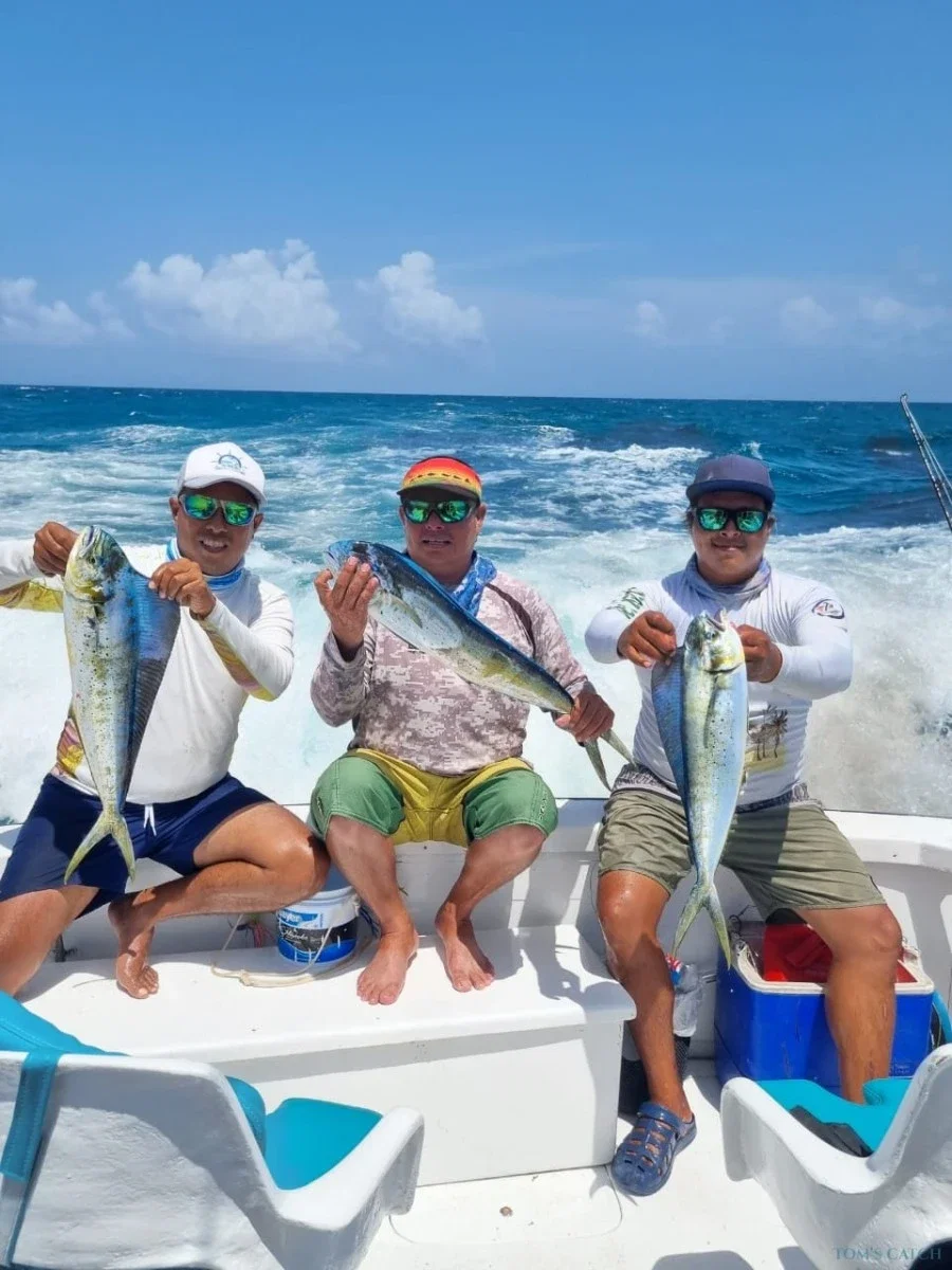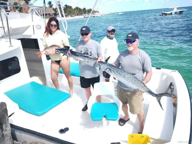 Reserva hoy mismo tu salida de pesca con Tom’s Catch y disfruta de un día inolvidable en las cristalinas aguas de Puerto Morelos, pescando peces trofeo y aprovechando al máximo tu aventura en el océano.