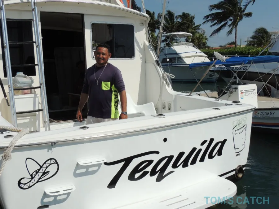 Tu embarcación para el día es el Tequila, un barco de pesca deportiva en alta mar Bertram de 33 pies con capacidad para 8 pasajeros. Cuenta con estabilizadores, profundizadores, una silla de combate y todo lo necesario para un día productivo en el agua. Hay un baño a bordo para tu comodidad. Encontrarás cañas, carretes y aparejos esperándote, junto con señuelos.
