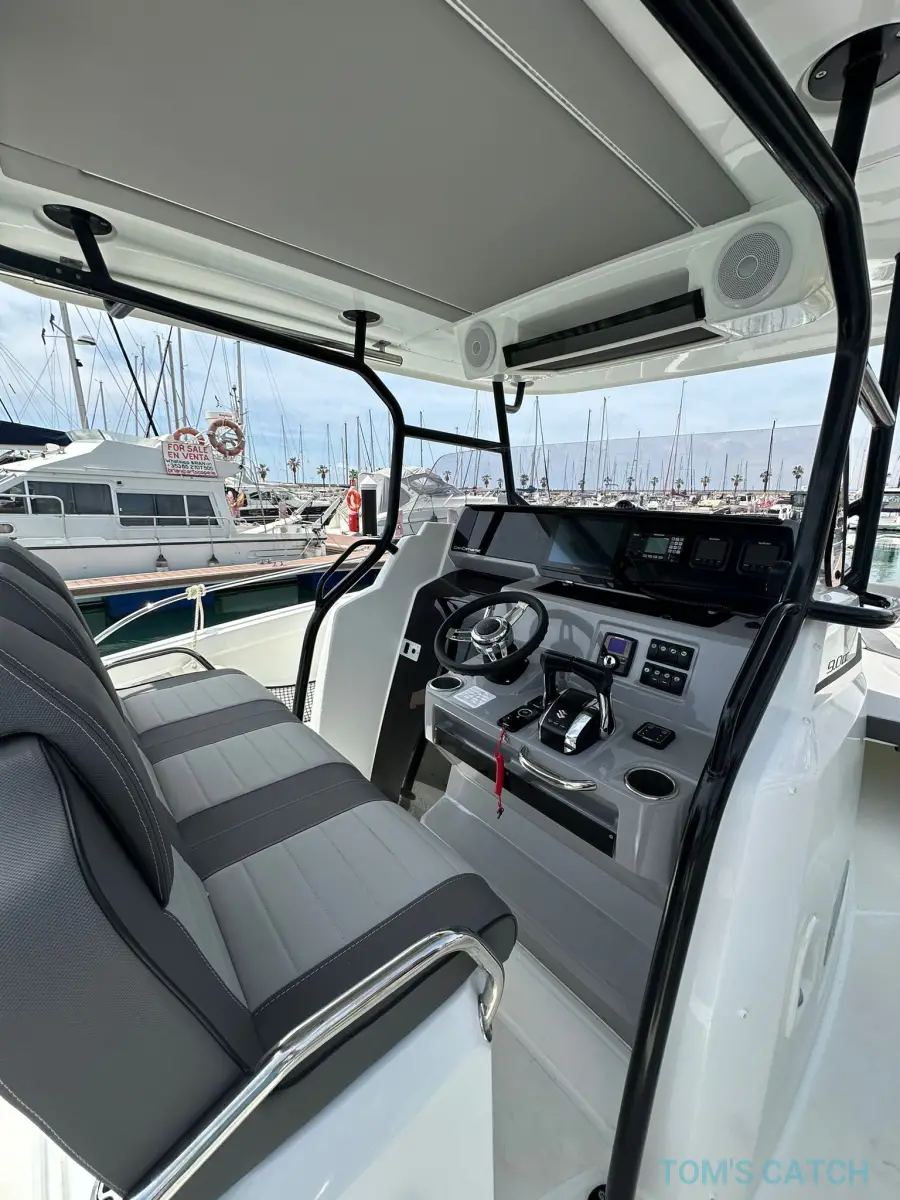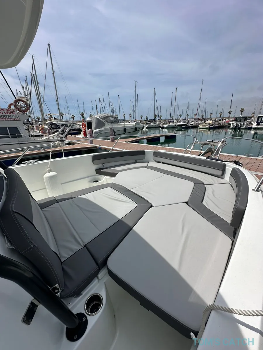 Equipado con hélice de proa, molinete eléctrico, plotter, GPS, refrigerador, sistema de sonido, bimini y mucho más. Ofrece una experiencia versátil para practicar deportes acuáticos, realizar salidas de pesca o disfrutar de relajantes cruceros al atardecer.