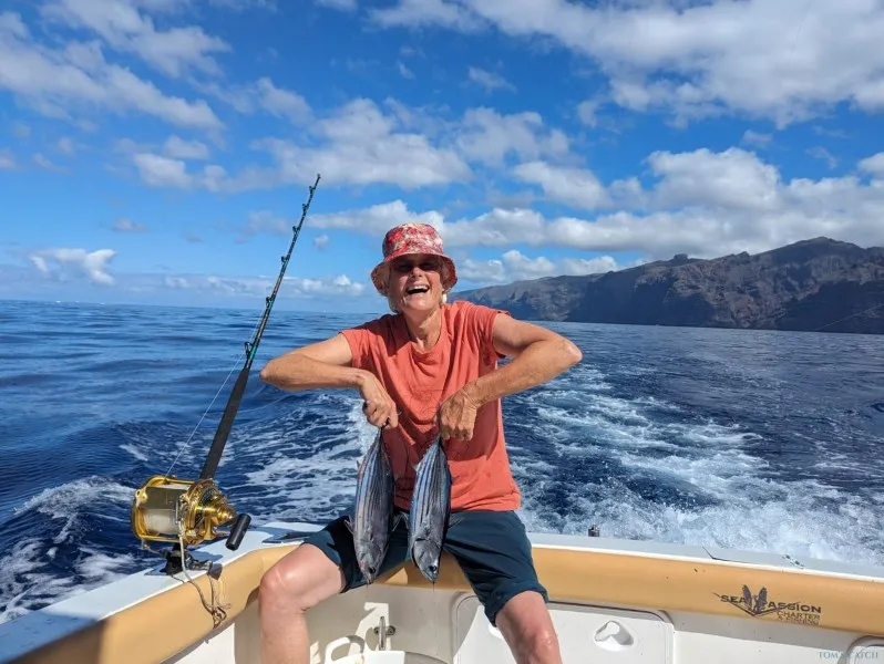 Durante tu día a bordo del «Sea Passion», podrás elegir entre pescar en el fondo del mar deliciosos peces ballesta y peces de roca, o realizar trolling en alta mar con grandes pelágicos como atunes, petos, dorados e incluso marlines. Tenerife recibe durante todo el año una gran variedad de especies de atún, por lo que siempre existe la posibilidad de pescar uno de estos increíbles depredadores.