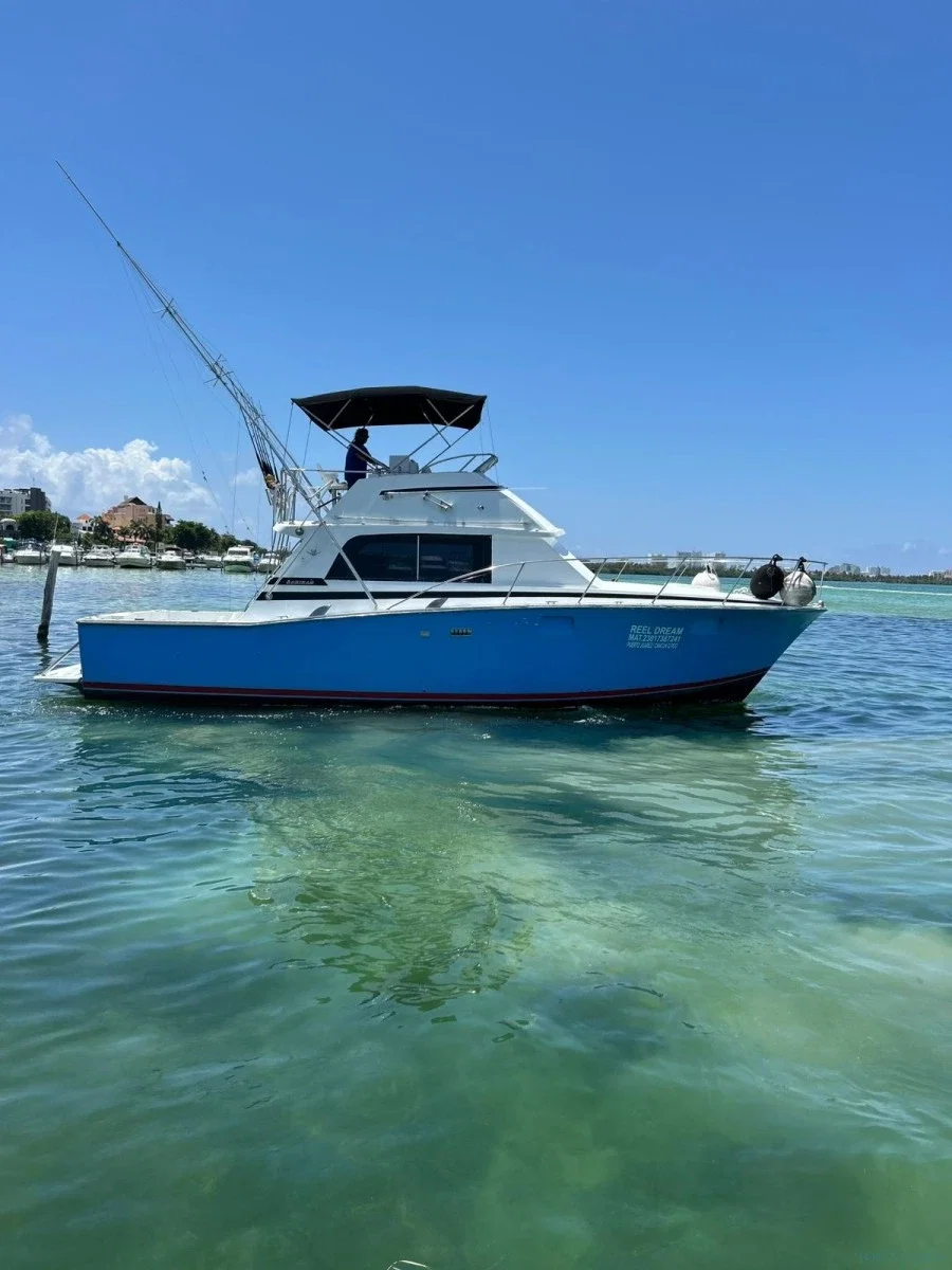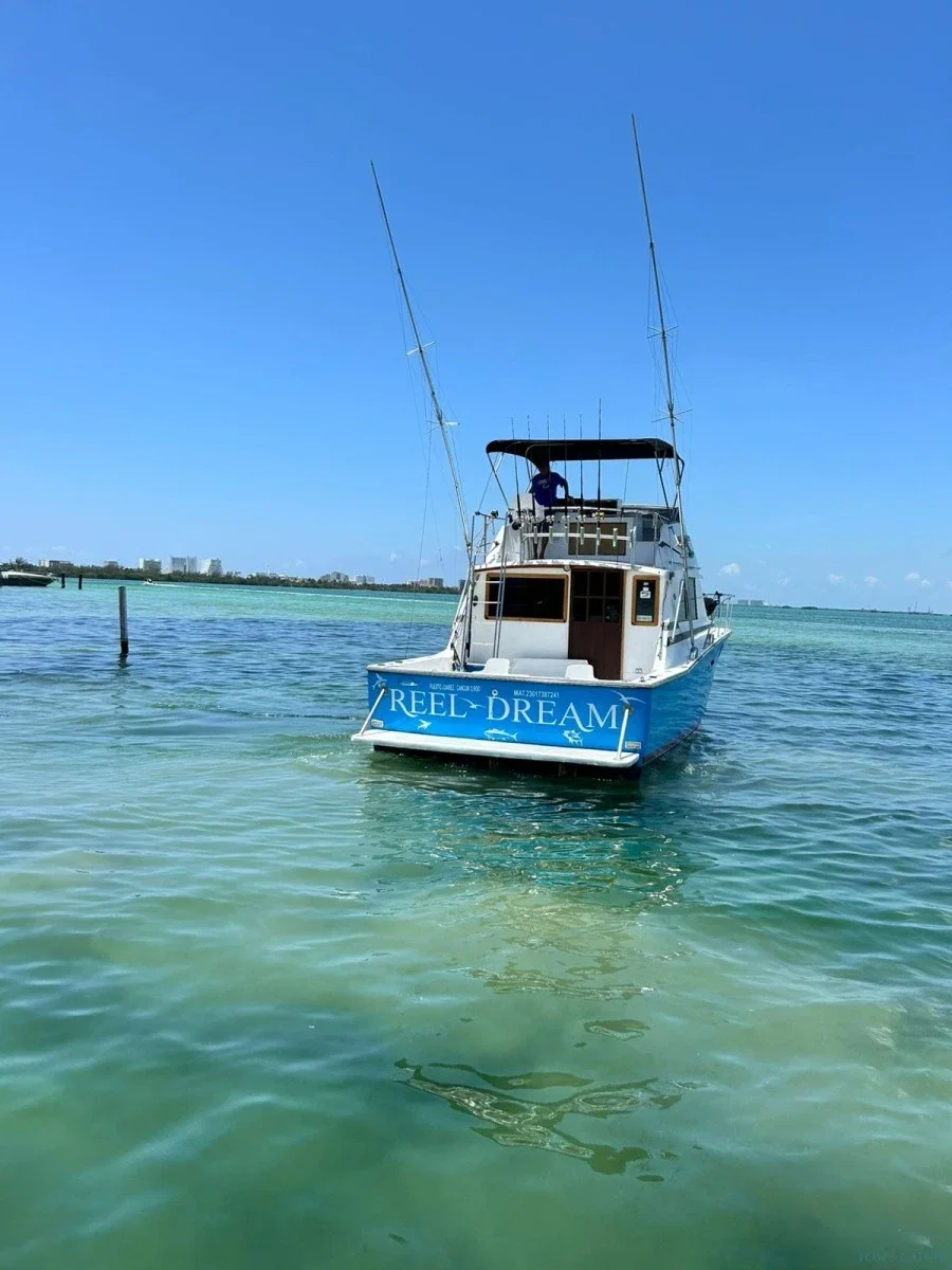 Geniet van een unieke sportviservaring in Cancún aan boord van de Reel Dream, een 40 ft Bertram-boot beschikbaar via Tom’s Catch. Deze privé vischarter is ideaal voor het vangen van soorten zoals marlijn, mahi-mahi, tonijn of wahoo in het heldere water van de Mexicaanse Caraïben. Met een ervaren lokale bemanning en alles wat je nodig hebt voor een veilige en comfortabele tocht, is de Reel Dream de perfecte keuze voor jouw visdag in Cancún.