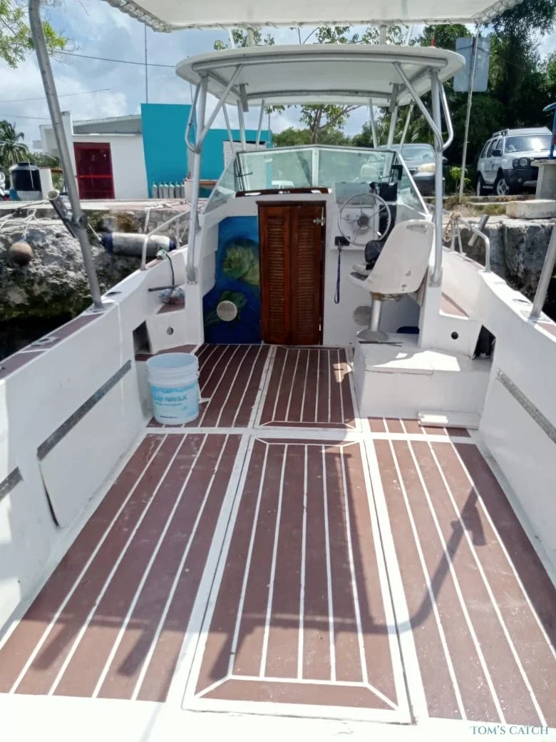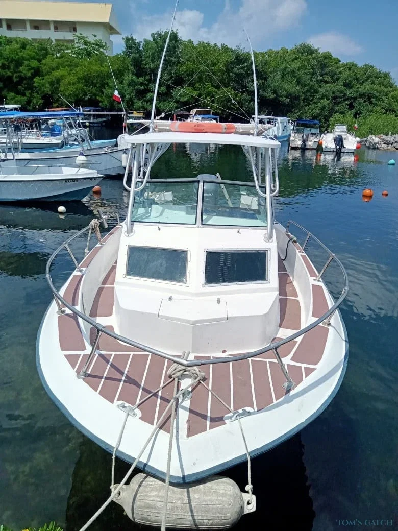 Ervaar de spanning van sportvissen in Cozumel, Mexico aan boord van deze comfortabele en veelzijdige 27 ft boot, beschikbaar via Tom’s Catch. Perfect voor kleine groepen, deze vischarter is ideaal voor een privé viservaring in het kristalheldere Caribisch gebied.