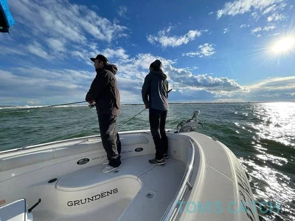 10% aanbetaling aan TomsCatch om de boot vast te leggen, de rest betaal je aan de kapitein: