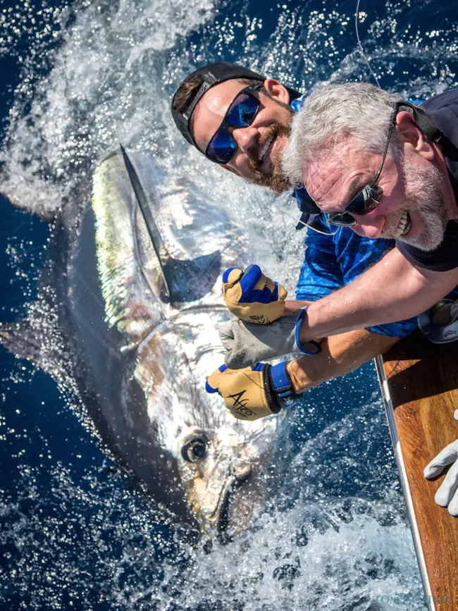 15% aanbetaling aan TomsCatch om de boot vast te leggen, de rest betaal je aan de kapitein: