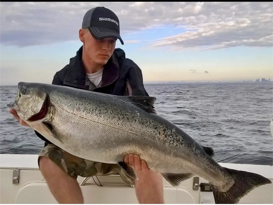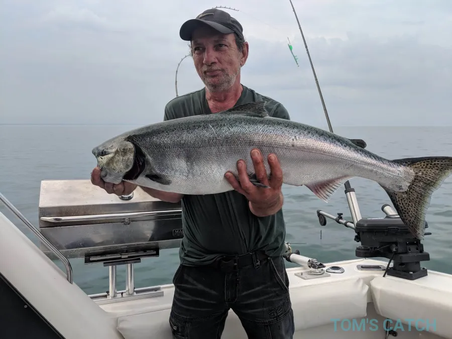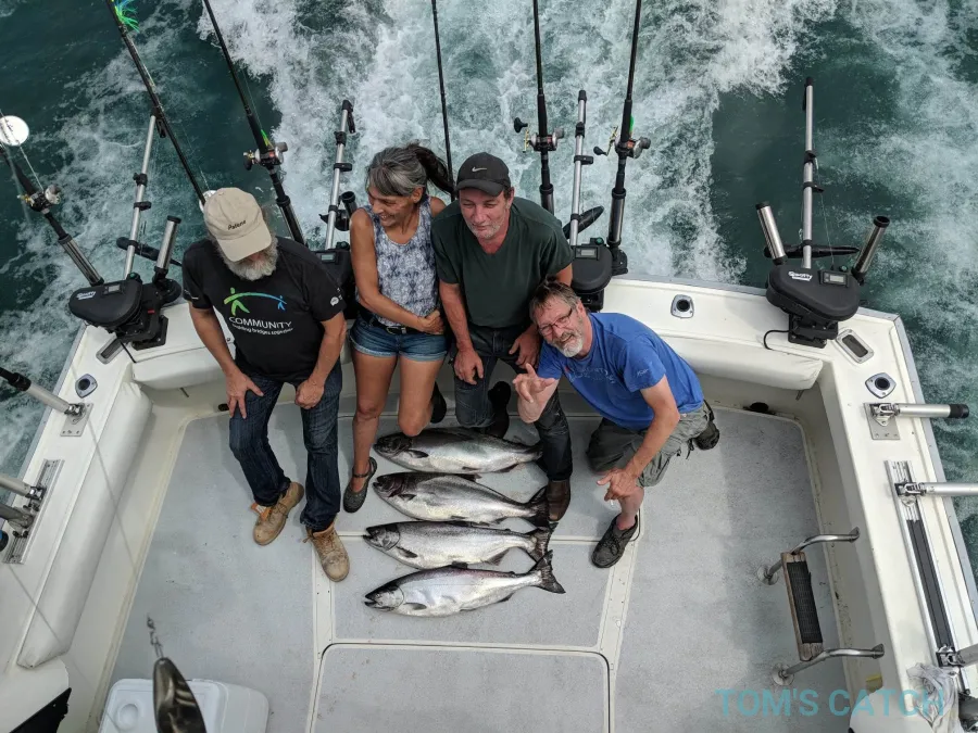 Lake Ontario vischarters voor zalm en forel. Full service, alle apparatuur aanwezig en geschikt voor grote groepen tot 16 personen. Onze charterboot is zeer ruim en schoon met veel ruimte, binnen, buiten en op de flybridge, zodat u zich onder alle weersomstandigheden comfortabel voelt. Ook een volledige, comfortabele wasruimte met stromend water.